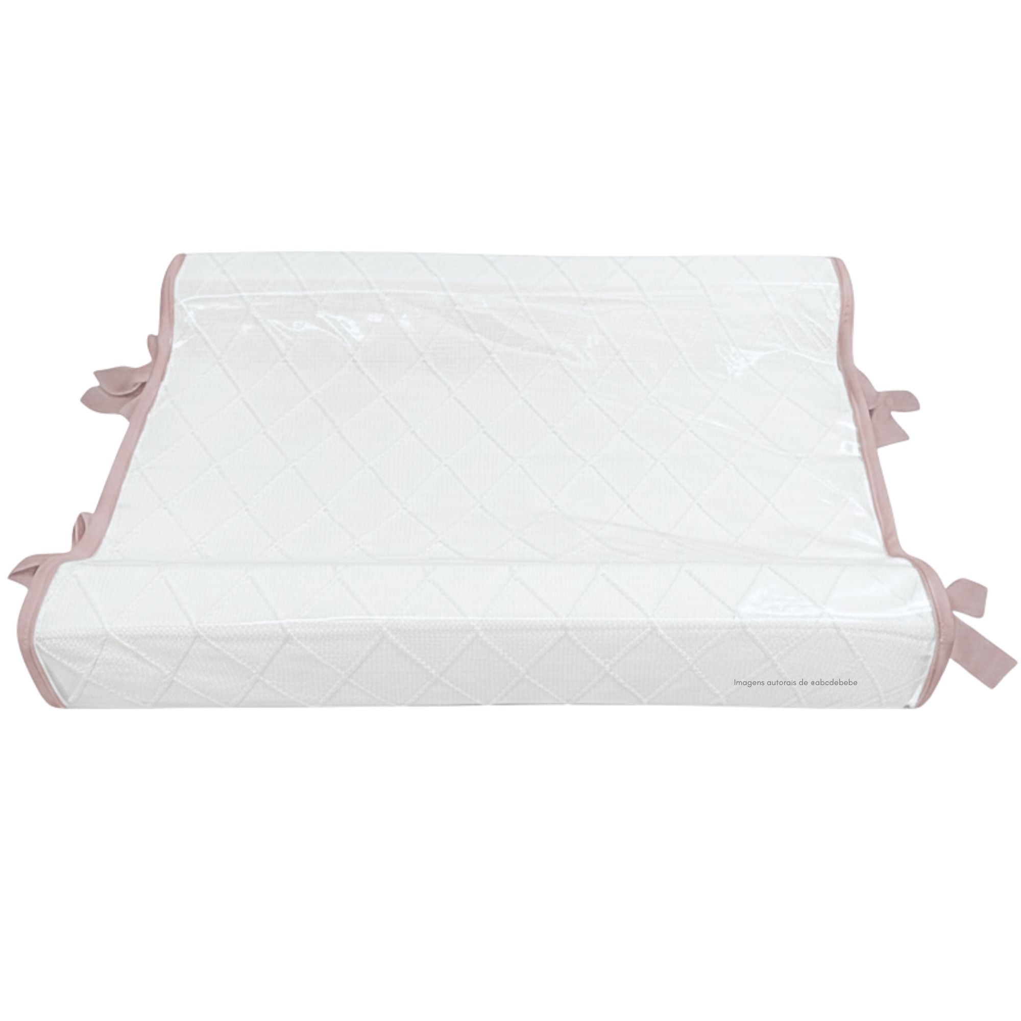 Confeccionado em tricô Seridó com trama em losangos, o trocador oferece um toque aconchegante e suave para a pele do bebê. Seu enchimento macio garante apoio confortável, enquanto a capa plástica transparente com bordinhas e laço de tricô protege contra líquidos e facilita a limpeza no dia a dia 🌿.