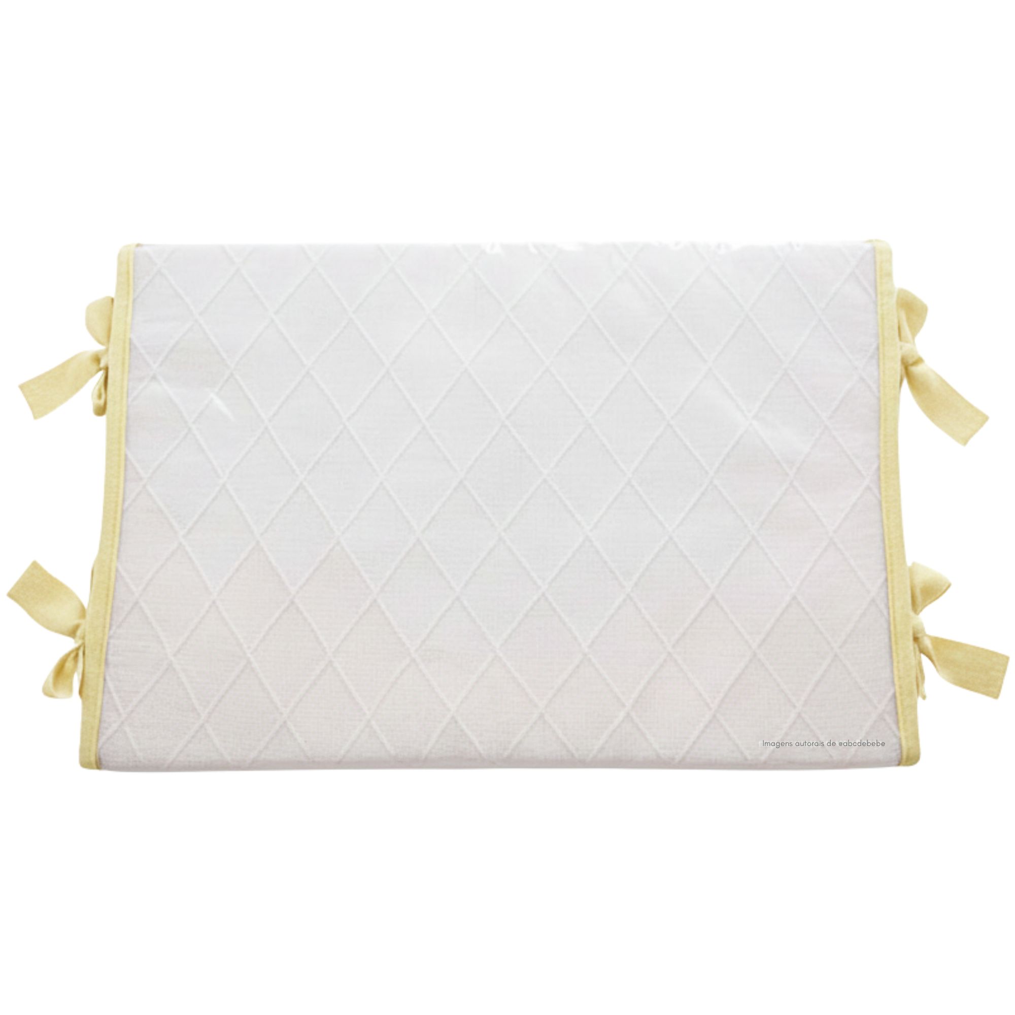 Com trama em losango e acabamento em laço de tricô, o trocador se destaca pelo visual charmoso e sofisticado, que harmoniza perfeitamente com qualquer estilo de quartinho. Acompanha uma capa plástica transparente com bordinhas, prática para proteger o tecido e facilitar a limpeza no dia a dia 🧺.