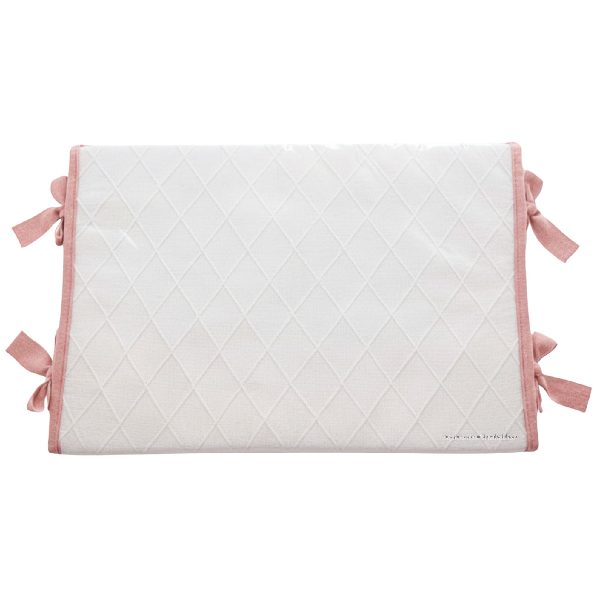 Com trama em losango e acabamento em laço de tricô, o trocador se destaca pelo visual charmoso e sofisticado, que harmoniza perfeitamente com qualquer estilo de quartinho. Acompanha uma capa plástica transparente com bordinhas, prática para proteger o tecido e facilitar a limpeza no dia a dia 🧺.