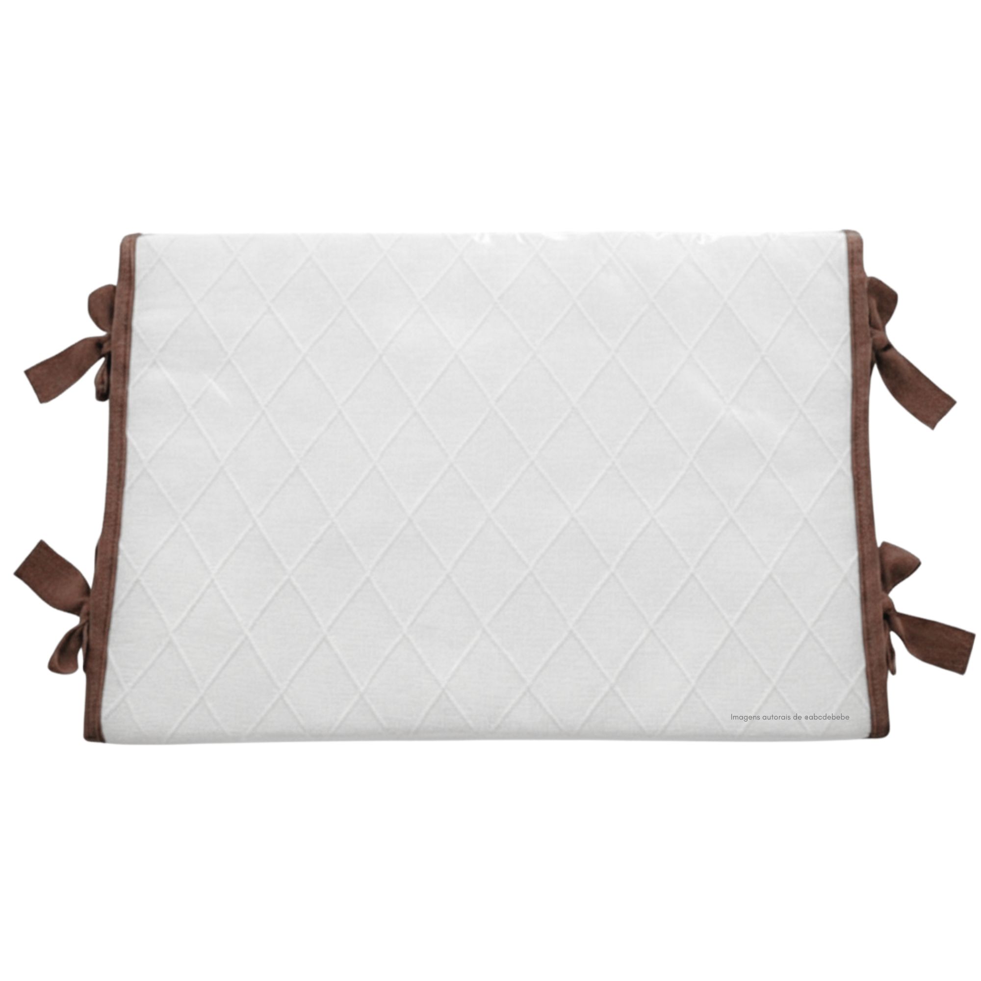 Com trama em losango e acabamento em laço de tricô, o trocador se destaca pelo visual charmoso e sofisticado, que harmoniza perfeitamente com qualquer estilo de quartinho. Acompanha uma capa plástica transparente com bordinhas, prática para proteger o tecido e facilitar a limpeza no dia a dia 🧺.