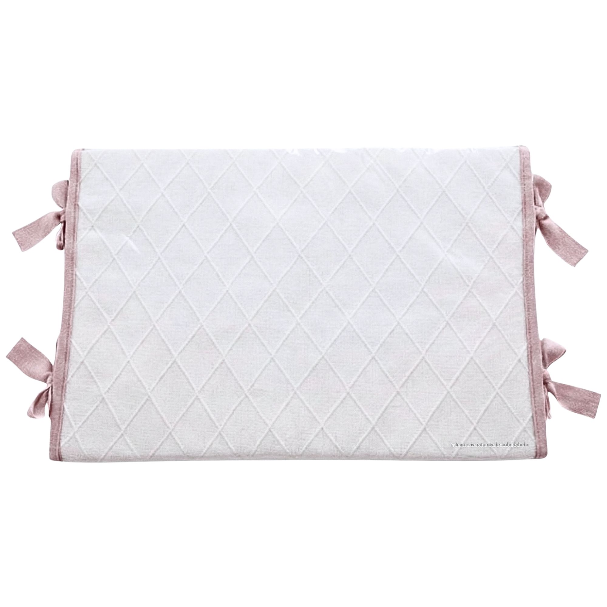 Com trama em losango e acabamento em laço de tricô, o trocador se destaca pelo visual charmoso e sofisticado, que harmoniza perfeitamente com qualquer estilo de quartinho. Acompanha uma capa plástica transparente com bordinhas, prática para proteger o tecido e facilitar a limpeza no dia a dia 🧺.