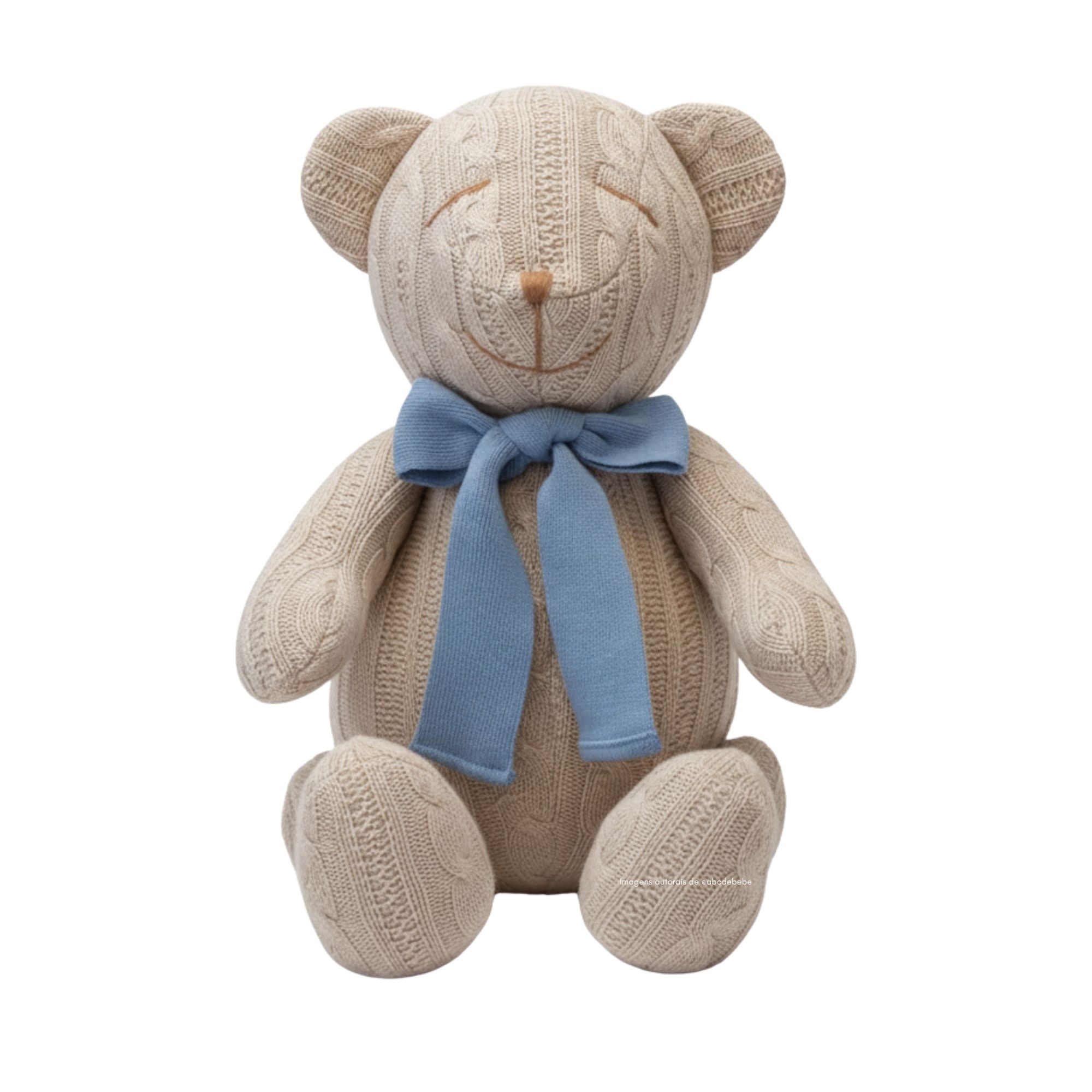 Urso Tricot - Tamanho M - Bege Nuvem / Azul Canto - Personalizado